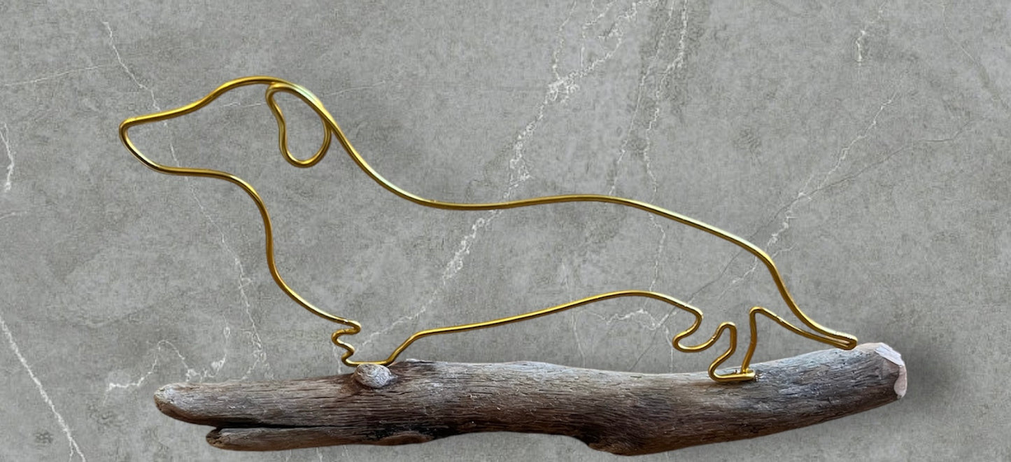 Dachshund wire silhouette on driftwood